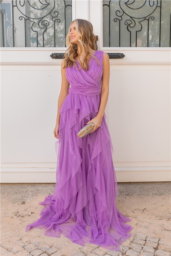 Göğüs Kat Balon Kol Abiye - LİLA