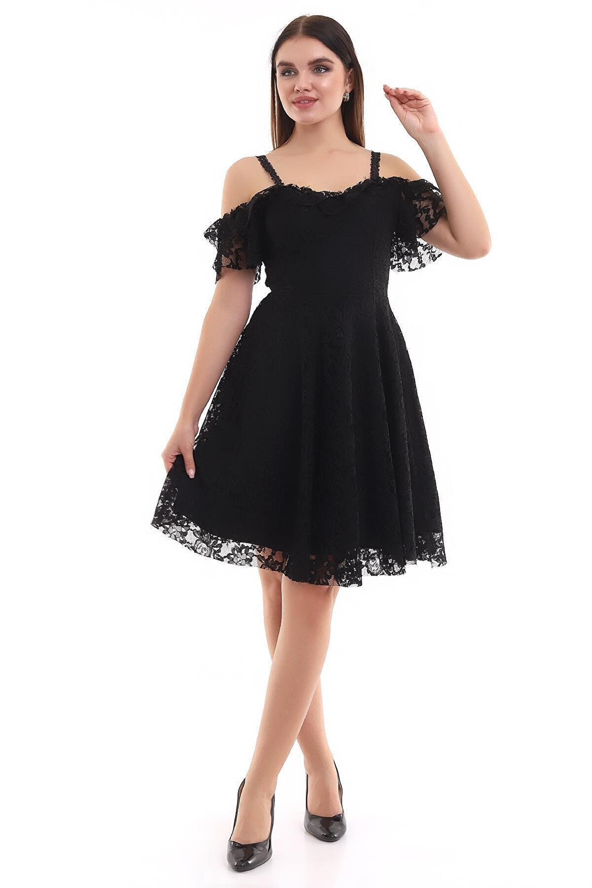 Güpür Askılı Dantel Mini Kloş Kapıda Ödeme