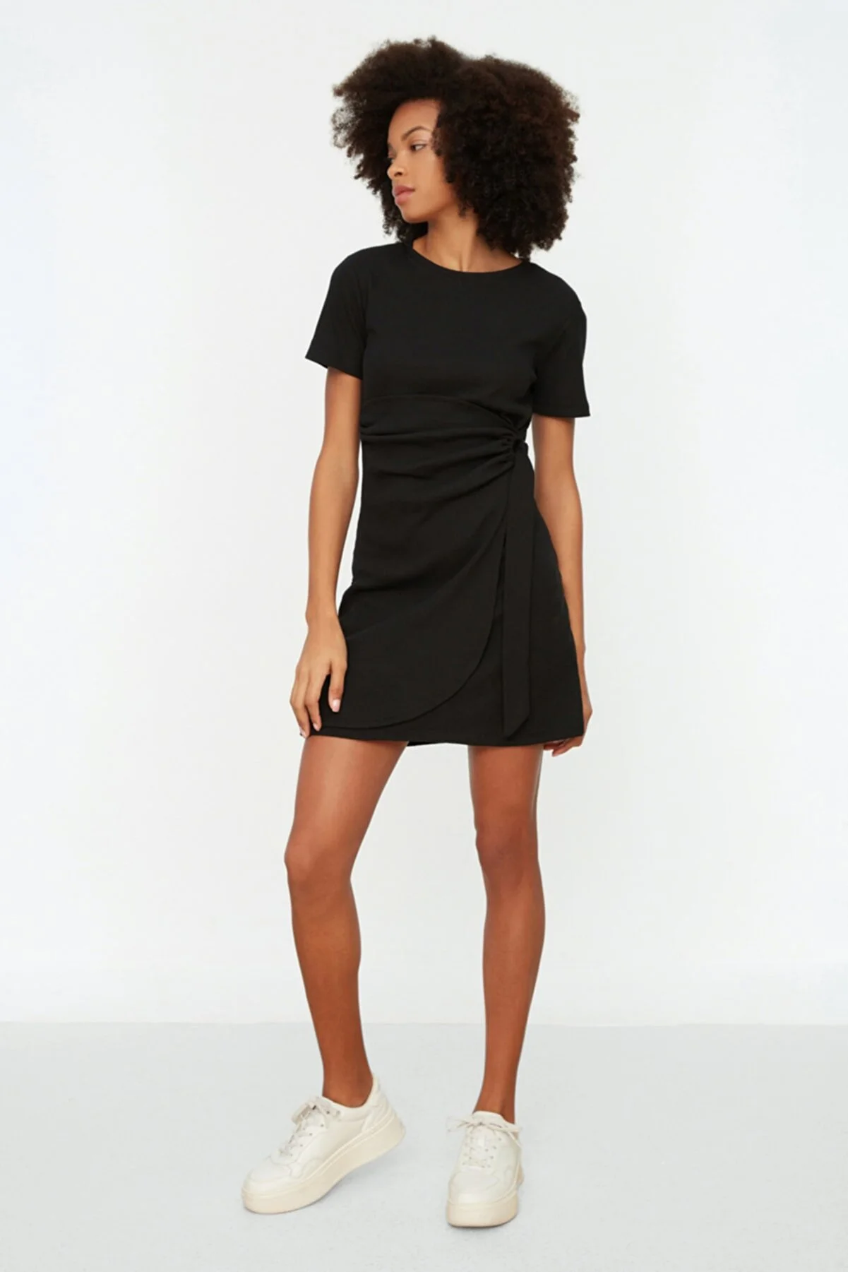 Siyah Toka Detaylı Fitilli Örme Elbise Hızlı Değişim