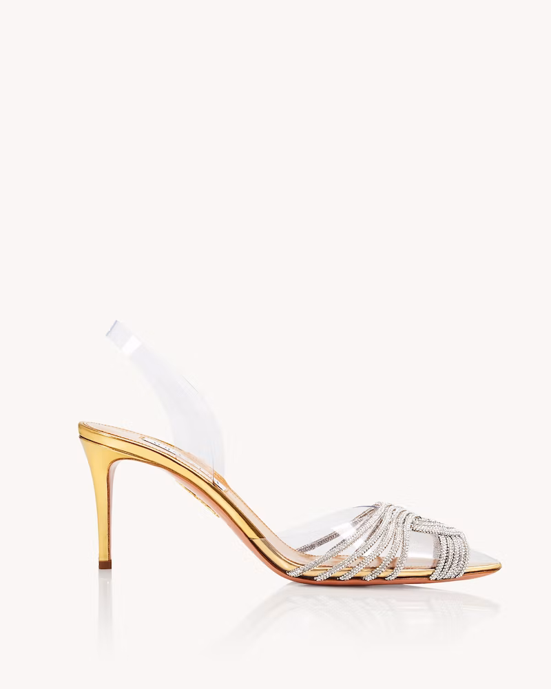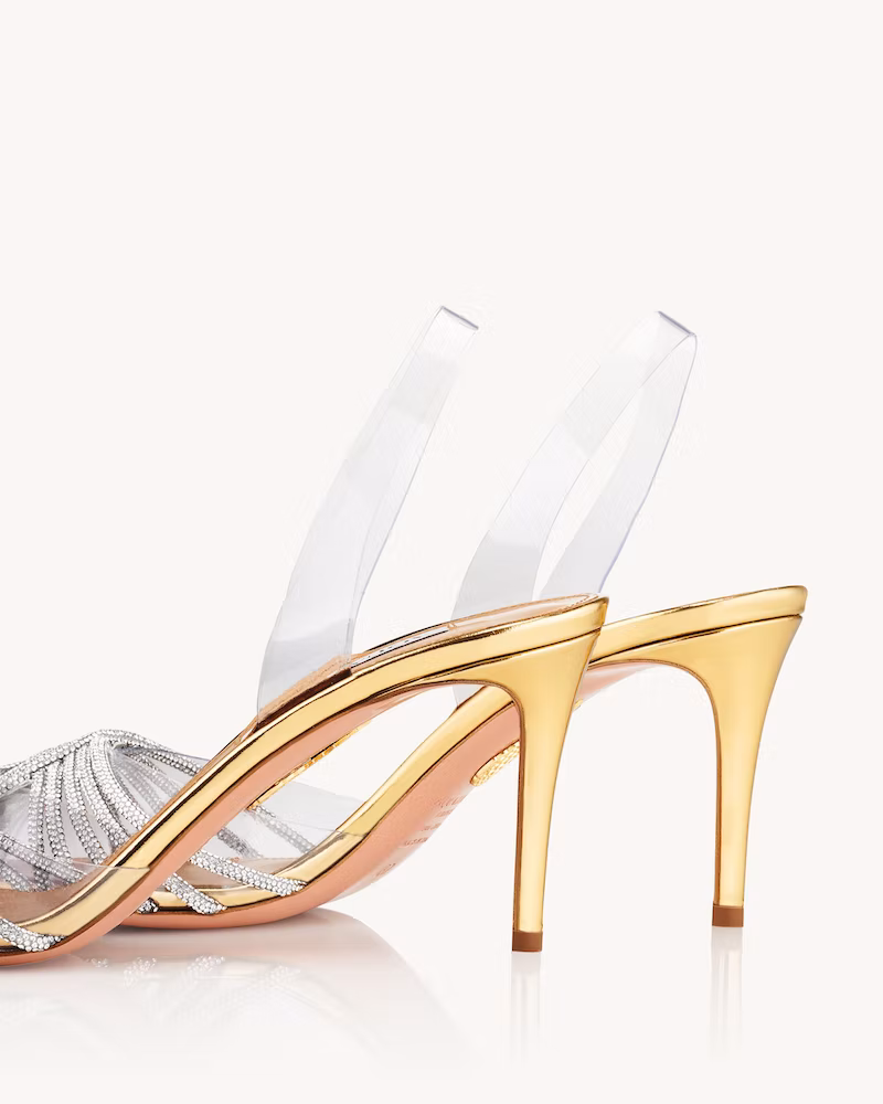 Stand tall in our 70's inspired Moon Sandal Plateau. Made in Italy from lustrous metal terrazo in golden platino, the style has slender straps that wrap the toes, an adjustable ankle strap and is set upon a chunky, sky-high heel. Wear yours with a floaty dress.