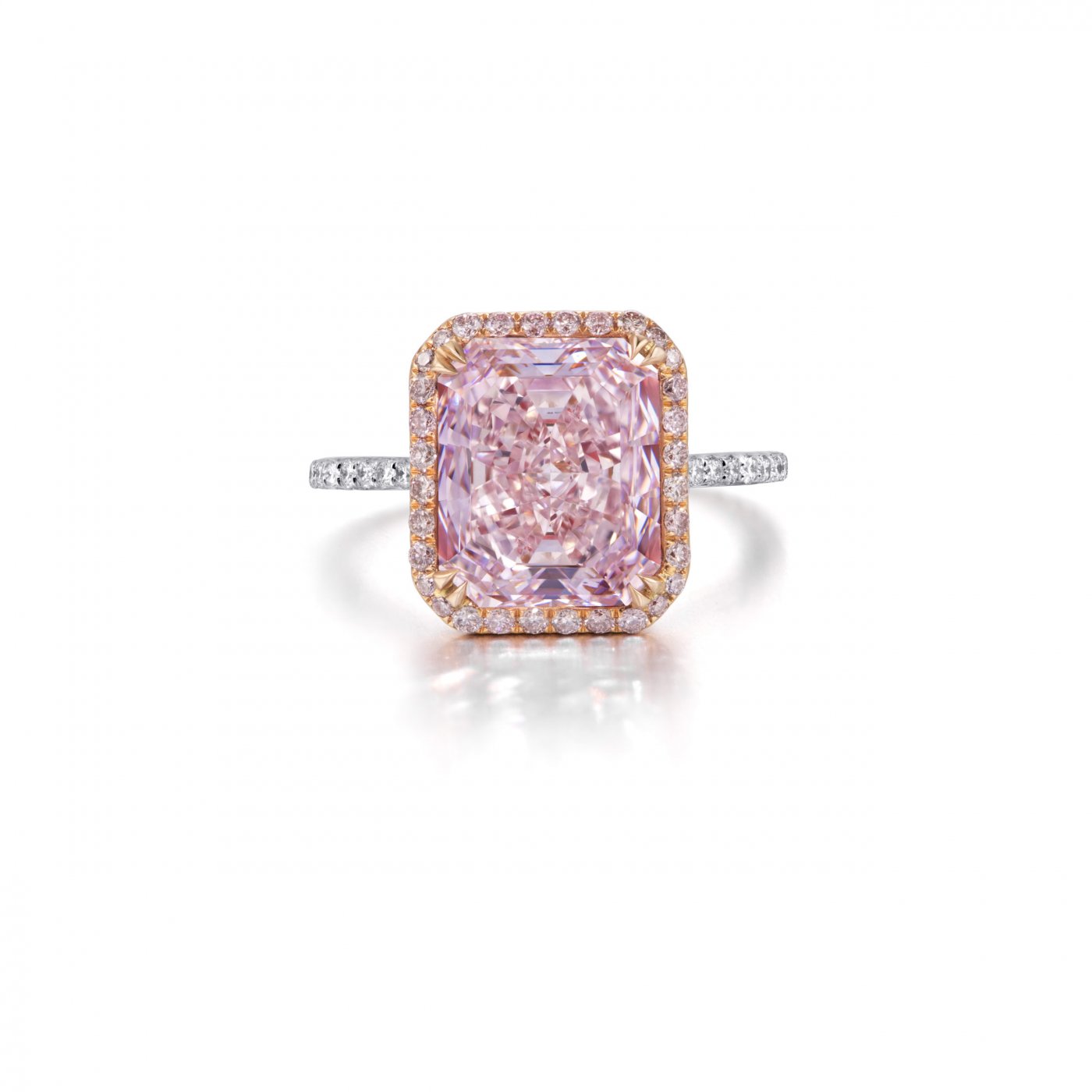 7.02ct Fancy Purplish Pink VS2, GIA. Side Stones 1.22ct. 18K White Gold