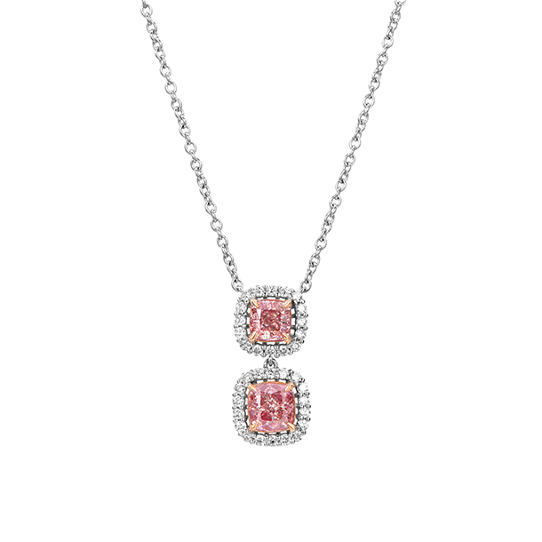0.76ct Cushion Light Pink VS2 & 0.70ct Cushion Very Light Pink VS1, GIA. 18K White Gold