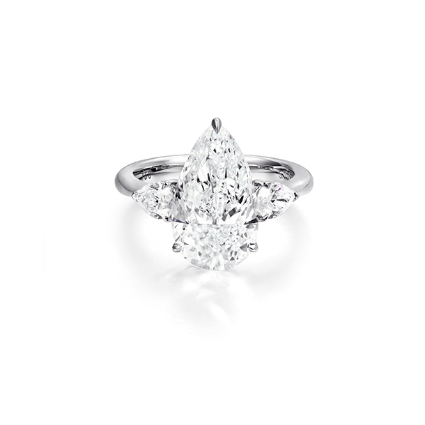 5.00ct Pear Shape G SI2, GIA. Side Stones 2 Pears 0.635cts. 18K White Gold