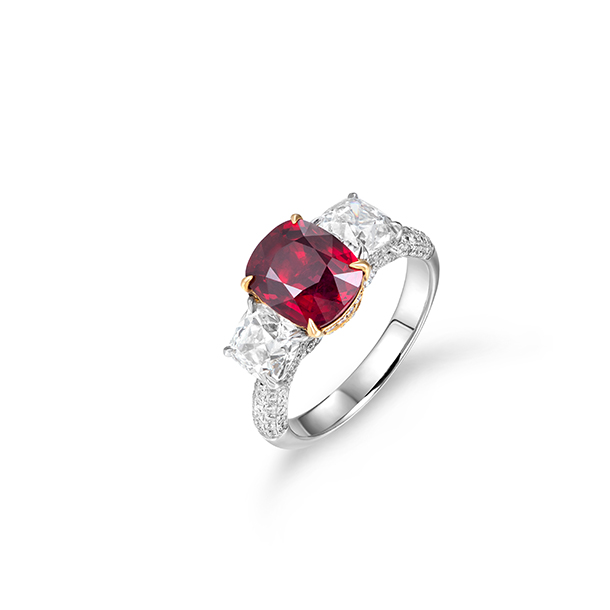 3.06cts Mozambique Ruby, GRS. Side Stones 2 Old Mine Cushion 1.68Ttw. 18K White Gold