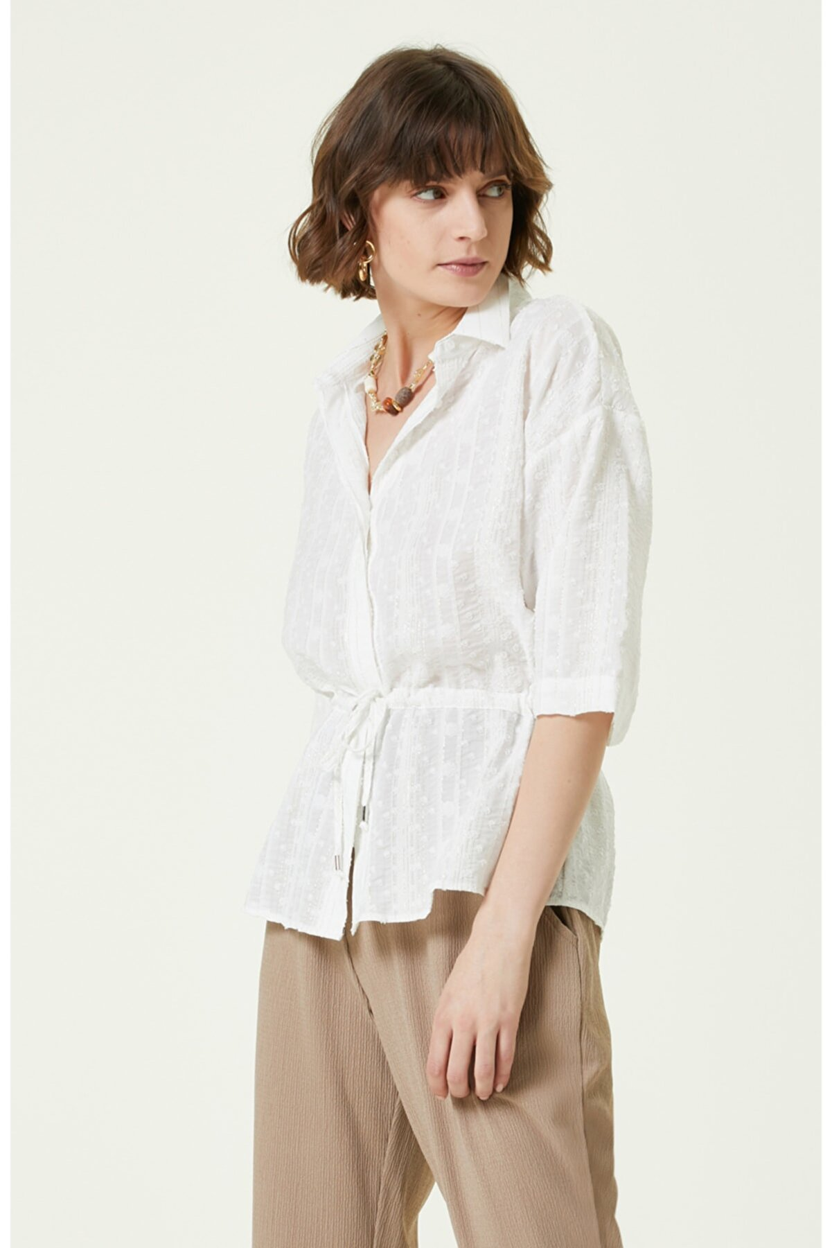 Beyaz Jakarlı Gömlek Hızlı Gönderim